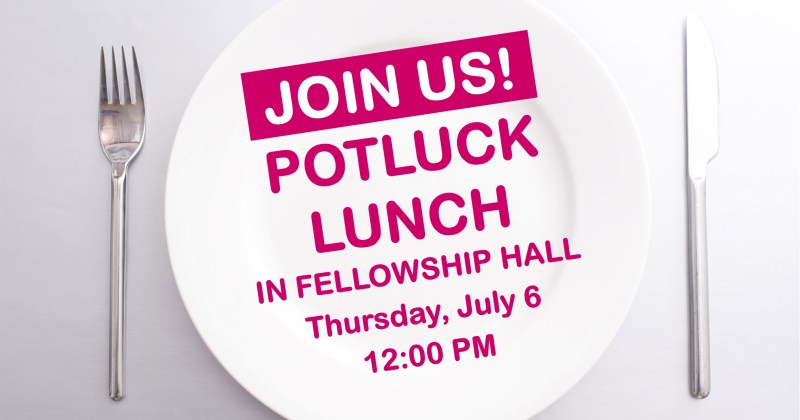 Inviting ALL WOMEN of the church to attend the July Lunch on Thursday, July 6th at Noon in Fellowship Hall. This will be a POTLUCK meal. Bring your favorite dish to share. Drinks, plates and silverware will be provided. Come and share your ideas for future gatherings like programs, service projects, etc. We hope you will join us for a time of delicious food and great conversation.