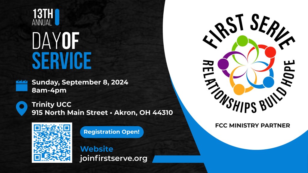 FCC is joining in with our ministry partner, First Serve for their 13th annual day of service on Sunday, September 8, 2024.