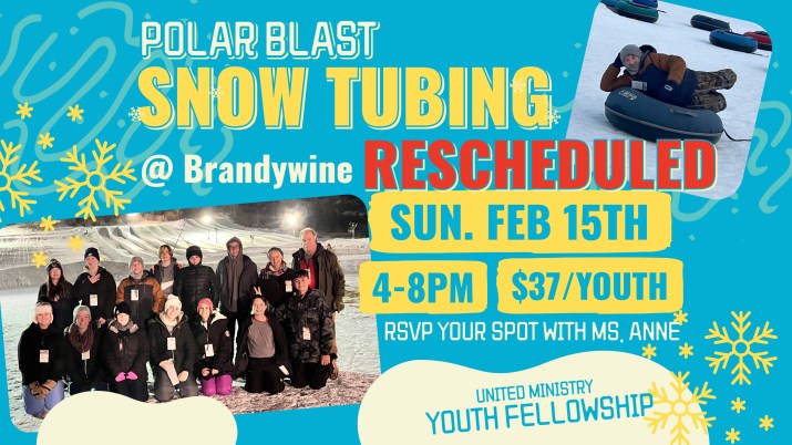 Hey Youth Grades 6–12! Grab your friends—or just bring your awesome self—and join us for a snow tubing adventure at Boston Mills/Brandywine Ski Resort for our January Youth Fellowship event!