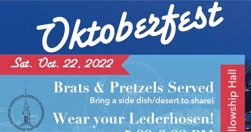 Join us for a Oktoberfest themed 5th Sunday worship in the Fellowship Hall. Join us for 5th Sunday Worship in our Fellowship Hall on Sunday, September 29. We will have an Oktoberfest theme. Stay after worship for food and fellowship! Brats…
