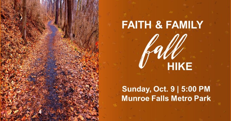 Join us on Sunday, October 9th at 5:00 pm at Munroe Fall Metro Park. Faith and Family and the Youth group will be hosting a fall hike at Munroe Falls Metro Park on Oct. 9 at 5 pm. Come join…